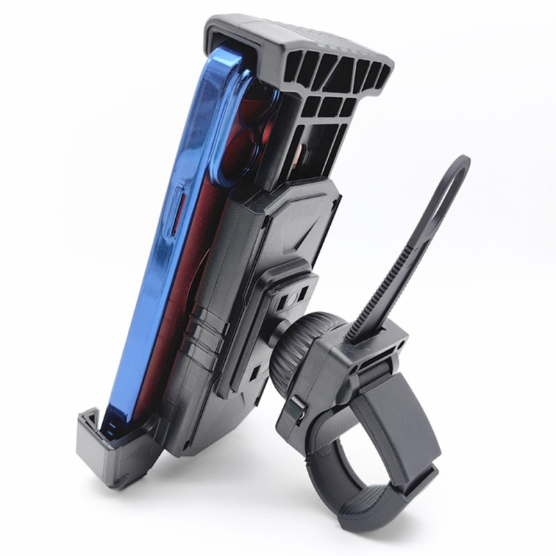 Para garantir uma estabilidade e acessibilidade óptimas para o seu smartphone, este suporte foi concebido com uma estrutura de fixação robusta. O mecanismo de fixação fixa firmemente o dispositivo (até 9,8 cm de largura) ao guiador, impedindo-o de cair. As almofadas antiderrapantes integradas protegem o telemóvel de riscos e absorvem as vibrações. Graças à sua rotação de 360 graus, os utilizadores podem ajustar o ângulo de visão ideal para a navegação GPS. Além disso, um orifício de carregamento dedicado significa que o dispositivo pode ser continuamente alimentado em viagens longas.