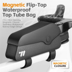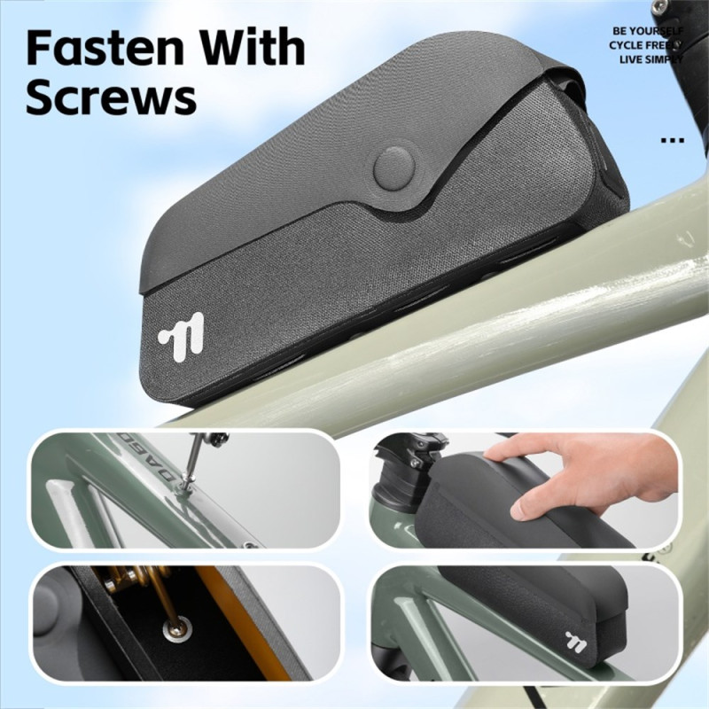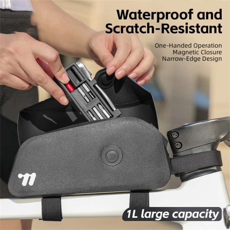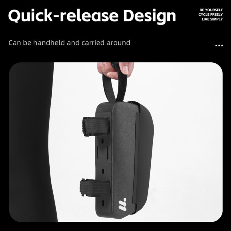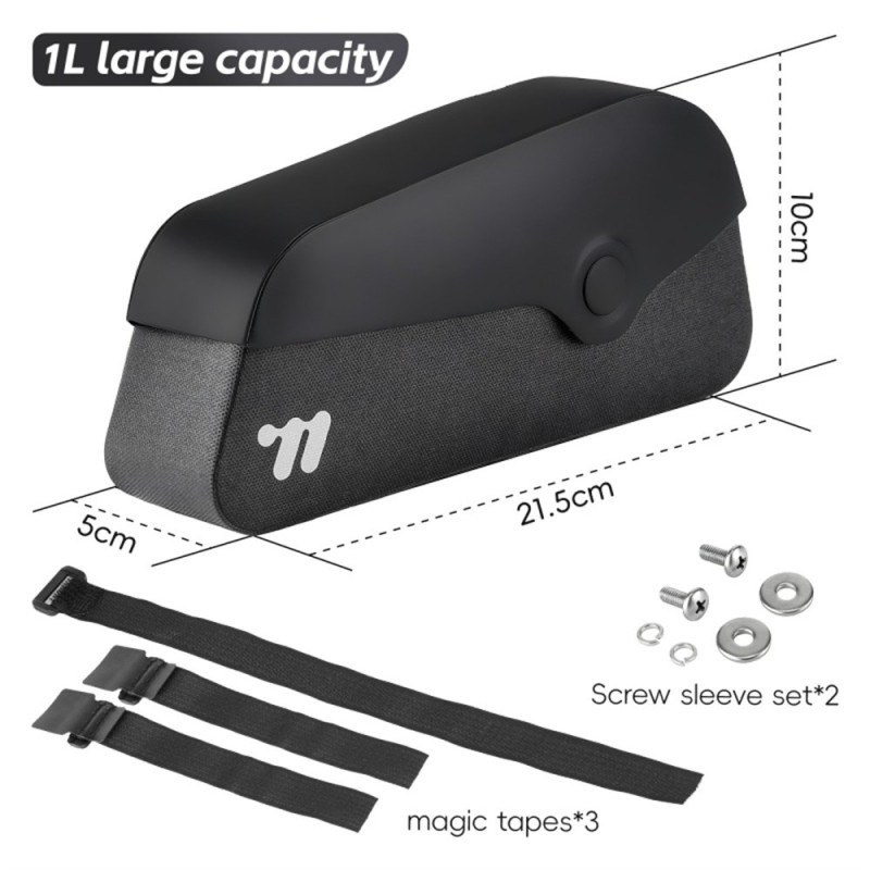 A manutenção do desempenho da pedalada e o acesso seguro aos seus objectos essenciais são a mesma coisa com este saco de quadro. Fabricado em TPU durável, oferece uma resistência superior à água e ao envelhecimento. A sua tampa magnética garante uma abertura e fecho rápidos, mantendo os seus pertences seguros. O design aerodinâmico com bordas estreitas elimina qualquer interferência com as pernas enquanto pedala. O dispositivo oferece duas opções de fixação: fita mágica para uma remoção rápida ou parafusos para uma estabilidade absoluta, mesmo em bicicletas de montanha. O interior estruturado mantém o conteúdo (1L) organizado.