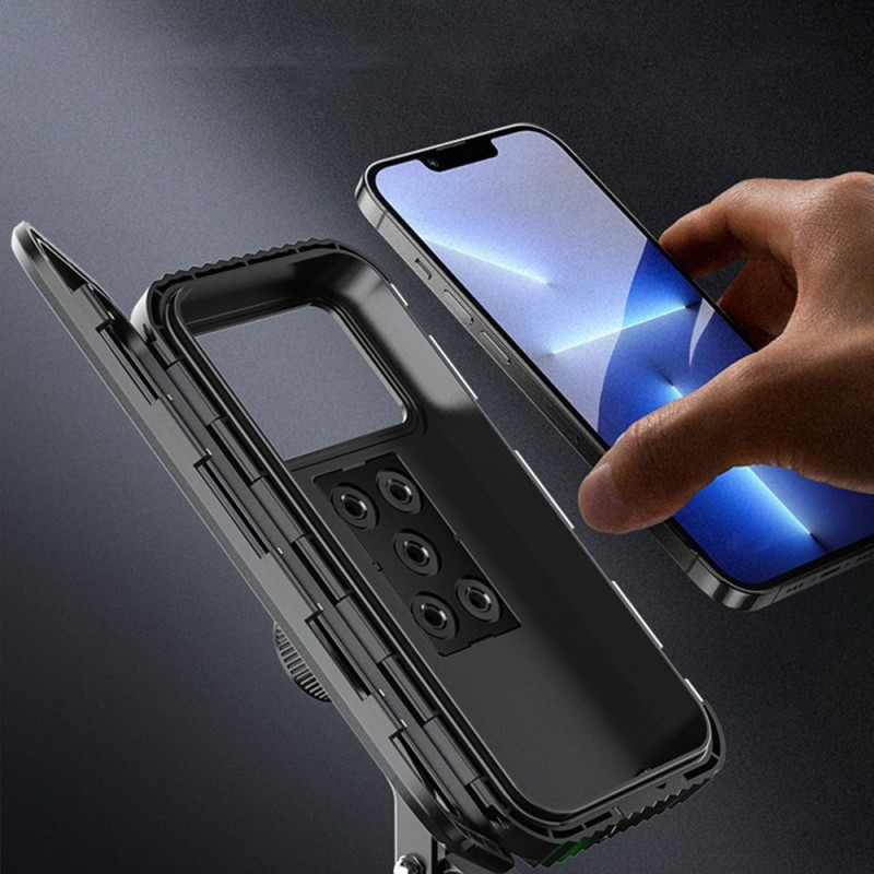 A sua paz de espírito está assegurada. Independentemente das condições climatéricas ou da velocidade, este suporte protege totalmente o seu smartphone das intempéries. Concebido para ser fixado de forma segura ao espelho retrovisor (mota, bicicleta eléctrica), elimina o risco de queda ou quebra. O ABS resistente ao calor e o invólucro em nano PU oferecem uma proteção duradoura e impermeável contra a água, a neve e o pó. O suporte é universal, acomodando telemóveis de 4,0 a 7,0 polegadas. O seu design torna-o rápido e fácil de instalar para utilização imediata.