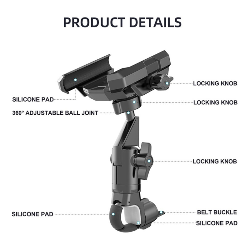 Para garantir uma navegação sem interrupções, mesmo nos terrenos mais exigentes, a estabilidade estrutural é essencial. Este suporte incorpora uma construção robusta em ABS e almofadas de silicone de proteção para uma absorção superior das vibrações. Oferece total ajustabilidade com rotação de 360 graus e inclinação de 45 graus para a frente e para trás, permitindo um ângulo de visualização perfeito. O design do suporte preserva o acesso total ao ecrã e à câmara, optimizando a segurança de utilização e a captura de paisagens. O seu design elegante confere um toque de sofisticação ao cockpit.