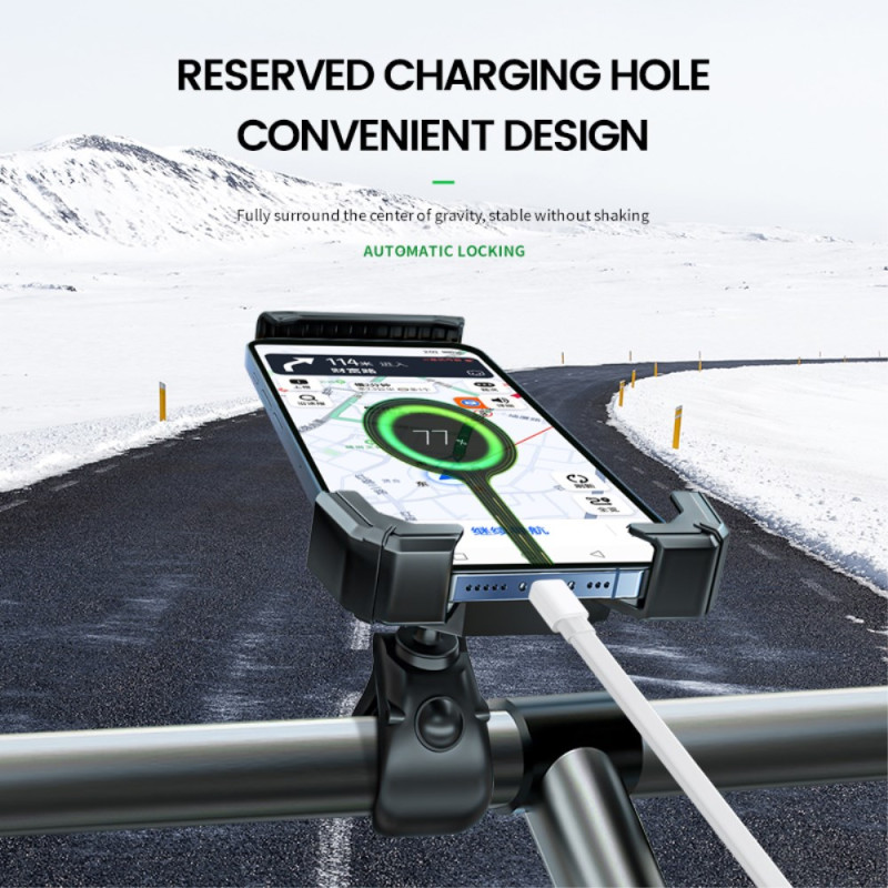 La solution de fixation la plus simple et la plus robuste permet désormais l'alimentation continue de votre appareil. Ce support universel sécurise fermement les téléphones de 3.5 à 8 pouces sur le guidon, grâce à une structure stable et des patins souples qui préviennent les rayures. La rotation à 360 degrés facilite l'ajustement de l'angle pour la navigation. Son orifice de charge réservé est conçu pour le branchement facile d'un câble d'alimentation, essentiel pour les longues périodes d'utilisation GPS. Le système de montage à clip assure une installation simple et rapide