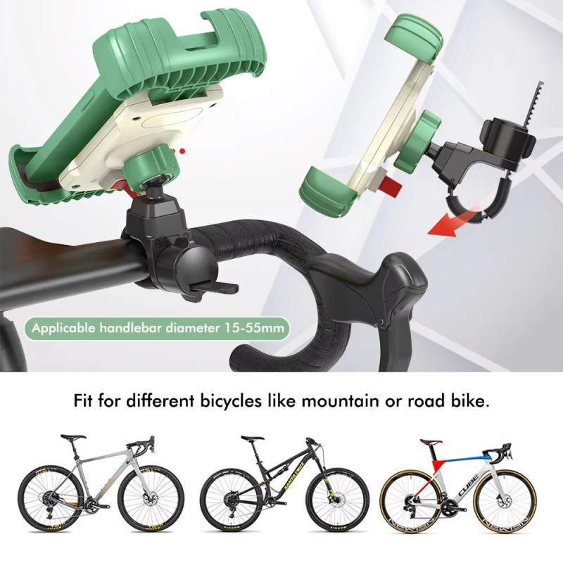 De motas a carrinhos de bebé e bicicletas, este suporte universal é a solução de adaptação mais flexível do mercado. Fabricado em ABS e silicone, fixa telemóveis de 4,7 a 7,2 polegadas graças a um bloqueio traseiro fiável e a um revestimento antiderrapante. As garras curvas foram concebidas para nunca obstruir o ecrã ou os botões, optimizando o acesso às funções. A sua cabeça giratória de 360 graus permite-lhe ajustar o ângulo de visão de forma rápida e precisa. Adapta-se com segurança a todos os guiadores com um diâmetro entre 15 mm e 55 mm.