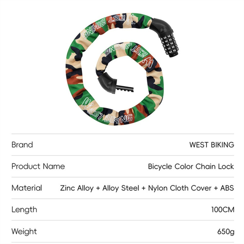 Com o aumento do risco de roubo, só um sistema de fecho testado e comprovado pode oferecer uma tranquilidade total. Esta corrente antirroubo utiliza um código de cinco dígitos (100.000 combinações) para uma segurança máxima. O cabo de aço interno de alta resistência é coberto por uma manga de nylon durável para proteger a pintura do seu veículo contra riscos. A cabeça de bloqueio em liga de zinco fundido proporciona uma estrutura sólida. Com um comprimento de 100 cm, oferece um amplo alcance para prender motos, bicicletas eléctricas e bicicletas de estrada a objectos fixos. O seu peso de 650 g é ideal para o transporte quotidiano.