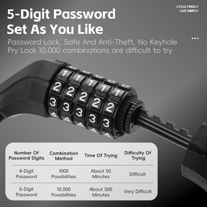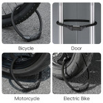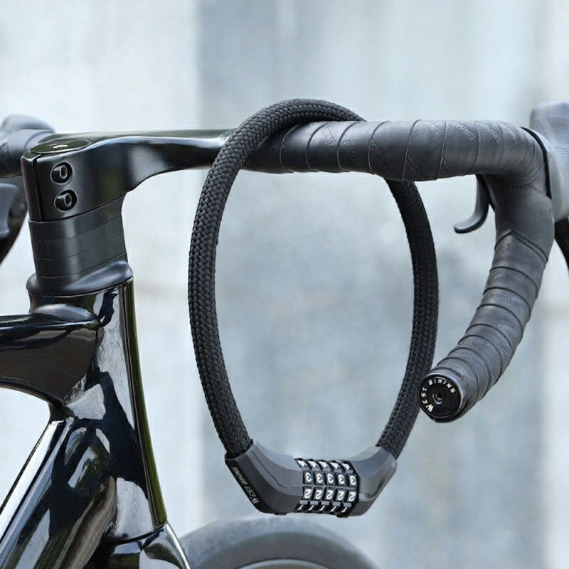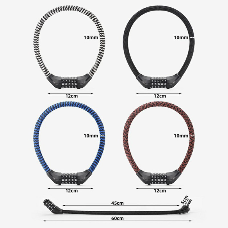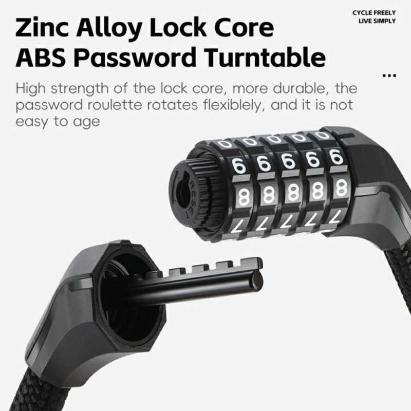 A segurança sem chave e a eficácia contra o roubo são asseguradas pelo sistema de combinação de alto desempenho deste dispositivo antirroubo. A fechadura de cinco dígitos elimina a necessidade de chaves, oferecendo 100.000 combinações para um elevado nível de proteção. O cabo de aço interno é reforçado para uma durabilidade máxima. O revestimento exterior em tecido de polipropileno protege o quadro da bicicleta contra riscos e é agradável ao tato no tempo frio. A cabeça em liga de zinco assegura um mecanismo robusto. O seu comprimento de 60 cm e o seu design compacto tornam-no ideal para o transporte quotidiano.