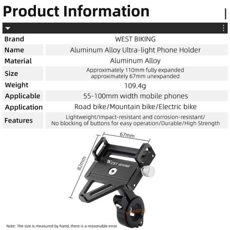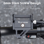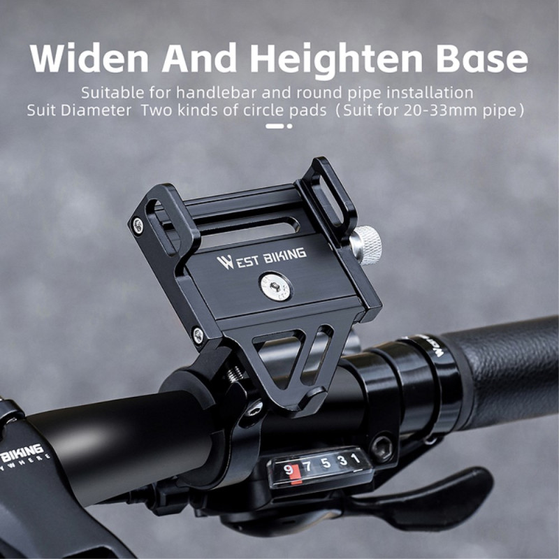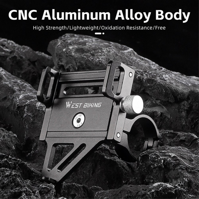 A liga de alumínio maquinada por CNC confere a este suporte de telemóvel uma durabilidade, leveza e resistência à oxidação incomparáveis. Pesando apenas 109,4g, este dispositivo WEST BIKING foi concebido para proteger telemóveis de 55mm a 100mm de largura. O design inteligente mantém o acesso aos botões laterais e à porta de carregamento. A base larga e alta encaixa de forma segura em tubos redondos de 20mm a 33mm. Graças ao ajuste do parafuso de 6 mm, o ângulo de montagem pode ser optimizado para máxima estabilidade e visibilidade em todos os tipos de bicicleta.