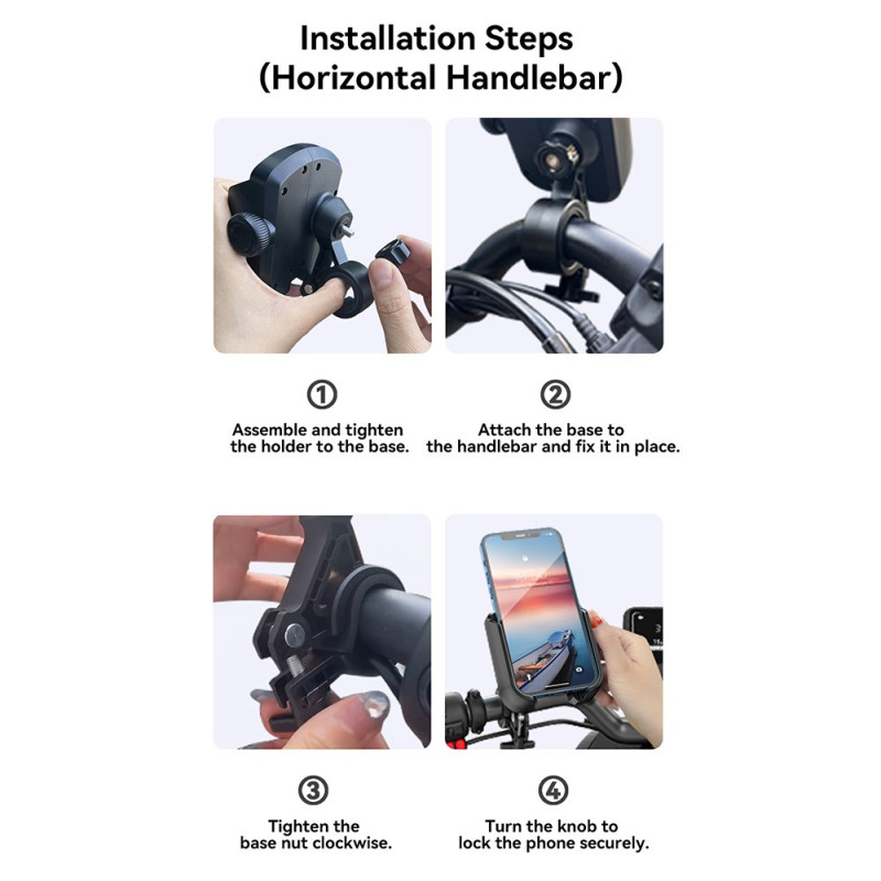 A necessidade de captar vídeo estável e utilizar o telemóvel em segurança é agora satisfeita por este dispositivo JOYROOM. Concebido para nunca obstruir a câmara, permite a gravação contínua de vídeo enquanto se anda de bicicleta. O mecanismo de fixação incorpora uma estrutura roscada de precisão, garantindo uma distribuição uniforme da força e uma fixação firme. A dupla trava de segurança no guiador evita qualquer deslizamento ou solavanco. O design permite uma utilização rápida com uma só mão, com rotação de 360 graus para uma visibilidade clara.