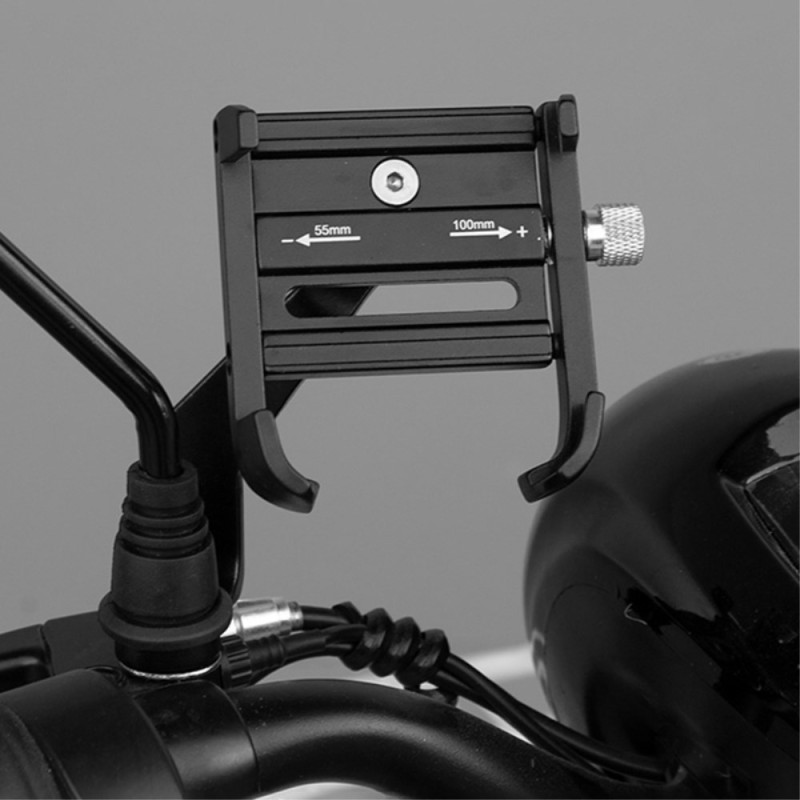 Graças à sua construção em liga de alumínio, este suporte é o mais rígido e mais seguro da sua classe no mercado. A liga de alumínio proporciona uma resistência estrutural excecional, minimizando as vibrações e garantindo a segurança do dispositivo. O braço de extensão abre até 100 mm, acomodando a maioria dos modelos de smartphones. A cabeça giratória permite uma rotação completa de 360 graus, proporcionando um ângulo de visão ideal para a navegação. Encaixa-se com segurança em guiadores de 22,2 mm a 31,8 mm.