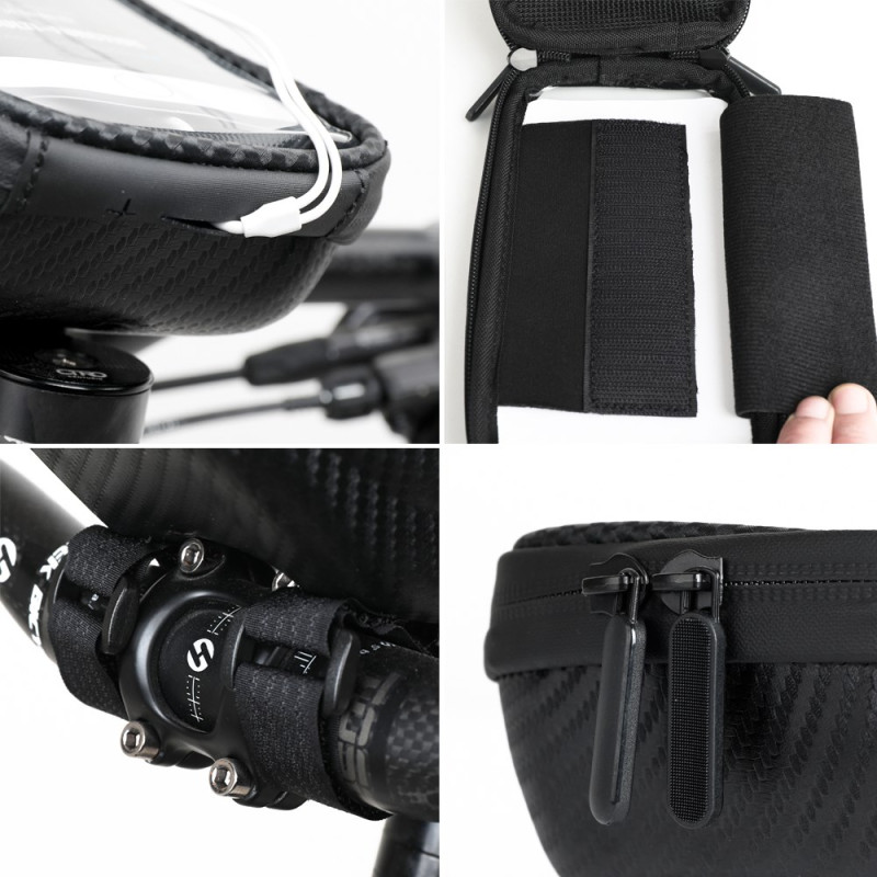 A interação contínua com a navegação e a proteção dos aparelhos são garantidas pela conceção integrada desta bolsa. Fabricada em PU e com um revestimento rígido em EVA, oferece uma excelente resistência ao desgaste e aos choques. A película TPU de alta sensibilidade permite acionar o smartphone sem o retirar do suporte. O fecho de correr duplo à prova de água garante a integridade do conteúdo em tempo de chuva. Há espaço suficiente no interior para uma bateria externa, um kit de reparação e os seus objectos pessoais. As correias ajustáveis garantem uma fixação firme e estável no quadro da bicicleta.