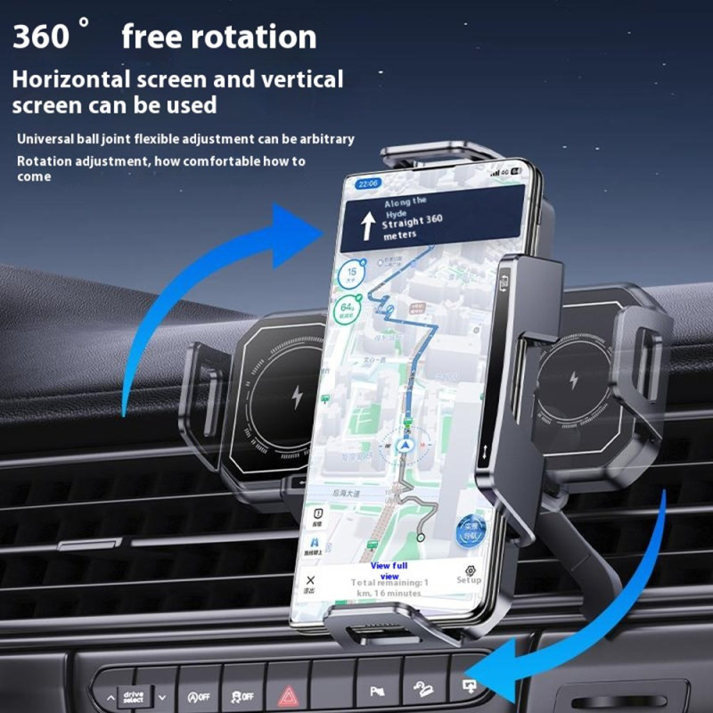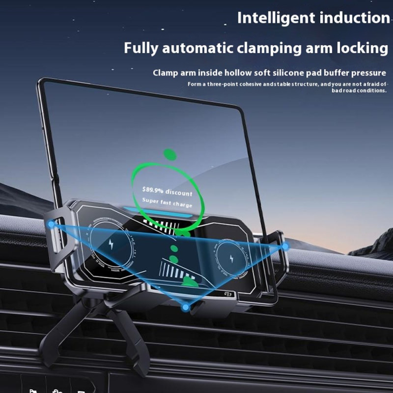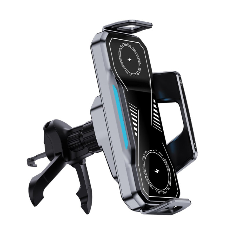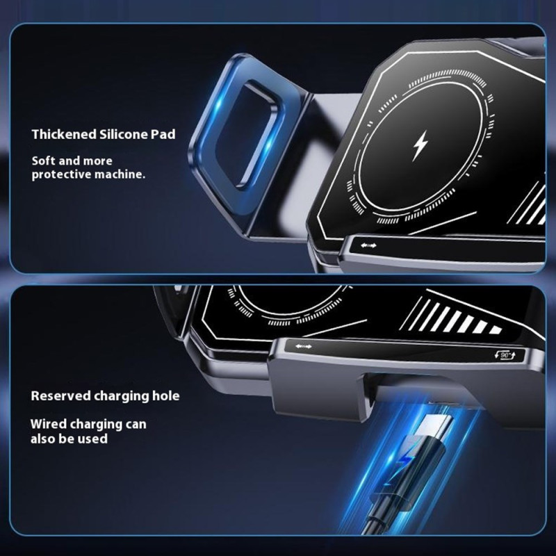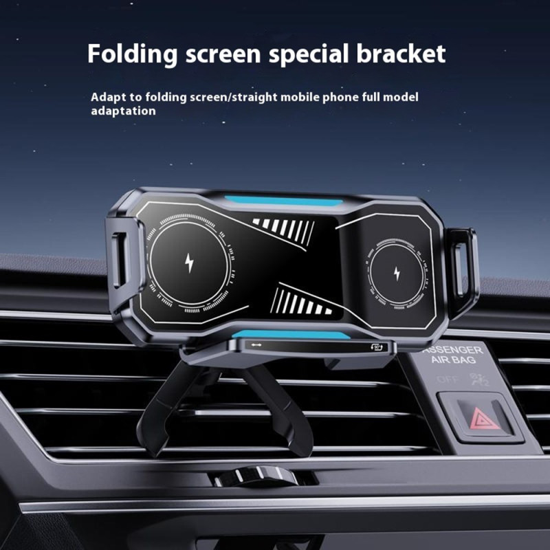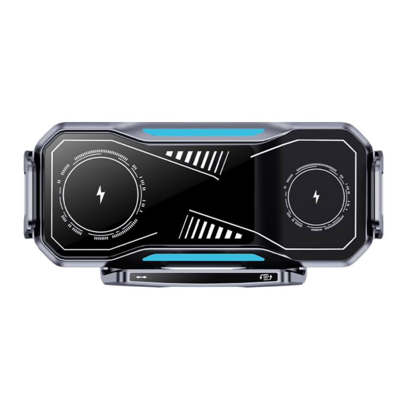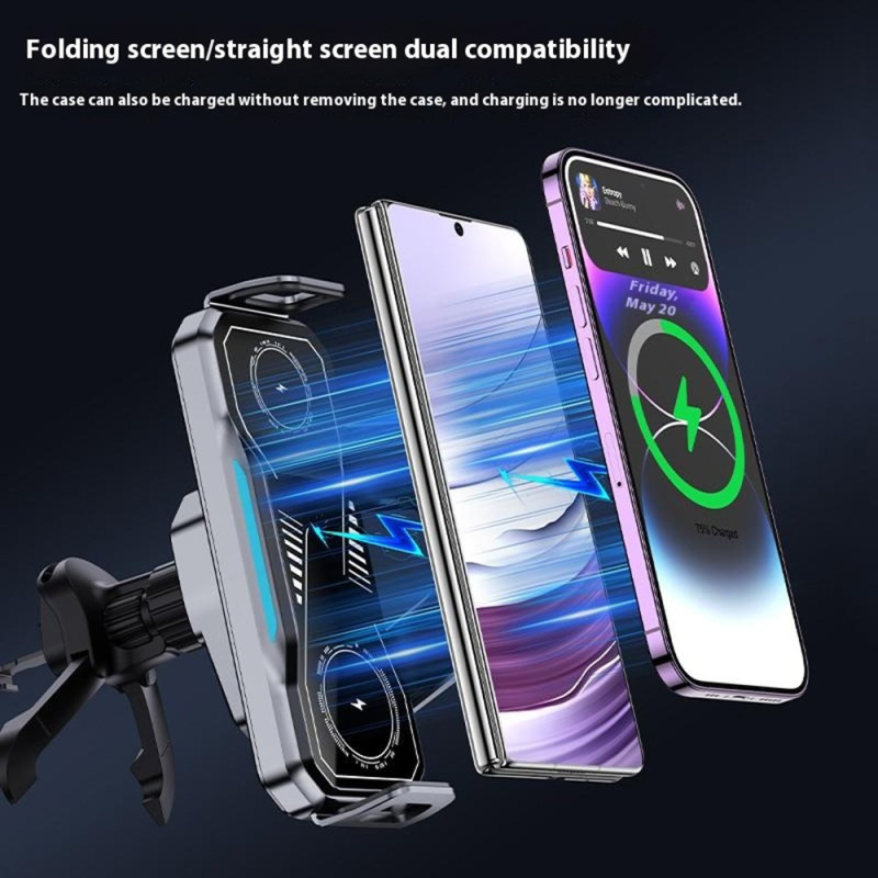 Transforme a sua experiência de condução com este inovador suporte de carregador sem fios. Equipado com duas bobinas de carregamento rápido de 15 W, é perfeitamente compatível com smartphones dobráveis. A sua iluminação ambiente integrada cria uma atmosfera elegante.