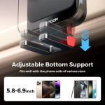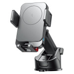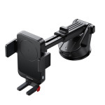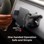 Carregue o seu smartphone com facilidade com este suporte para automóvel inteligente com carregamento rápido sem fios de 15 W. Instalação fácil com uma só mão, rotação de 360° para um ângulo de visualização ótimo e fixação segura graças aos grampos laterais. Compatível com dispositivos de 5,8" a 6,9".