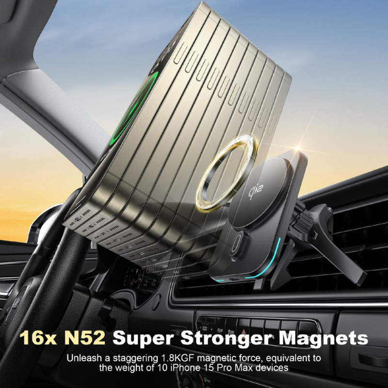 Descubra o suporte do carregador sem fios para automóvel WIWU CH-323 Qi2 MAGO. Desfrute de um carregamento rápido até 15 W com certificação Qi2, um potente suporte magnético e um ângulo de visão ajustável para uma condução segura.