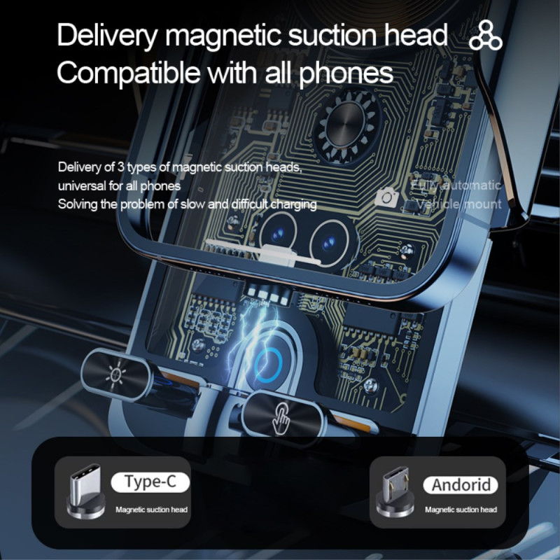 Base de carregamento sem fios inteligente com sensor de infravermelhos automático. Estrutura de três pontos ultra-estável para todos os tipos de estrada. Carregamento rápido de 15 W com fixação magnética. Instalação e remoção instantâneas para uma utilização fácil.