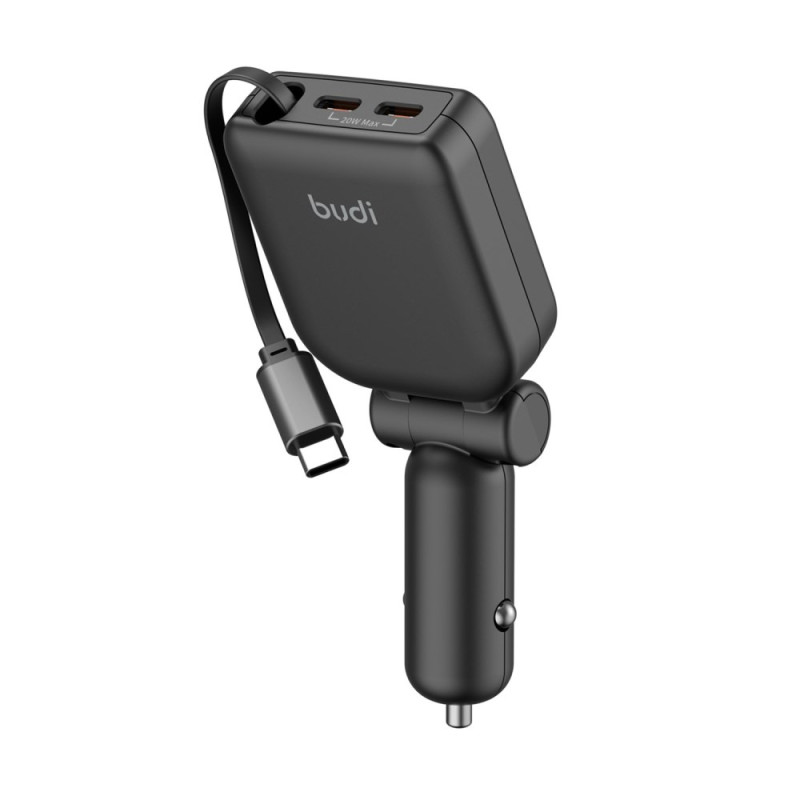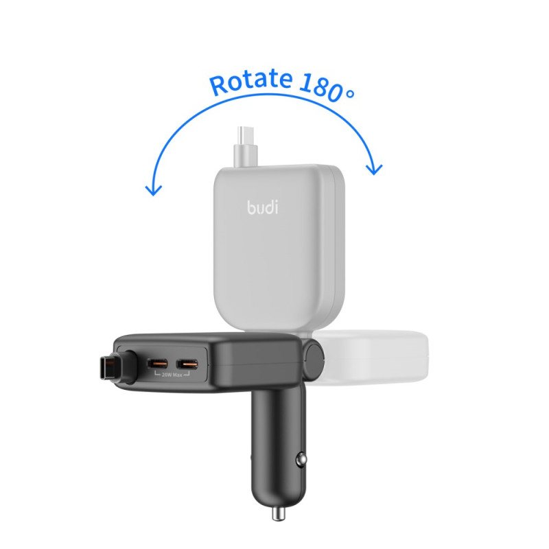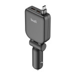 Carregador para automóvel inteligente de 50 W com cabo Type-C retrátil de 72 cm e 2 portas extra. Design inovador e dobrável para um ângulo de carregamento ajustável. Carregue até 3 dispositivos em simultâneo com uma potência óptima.