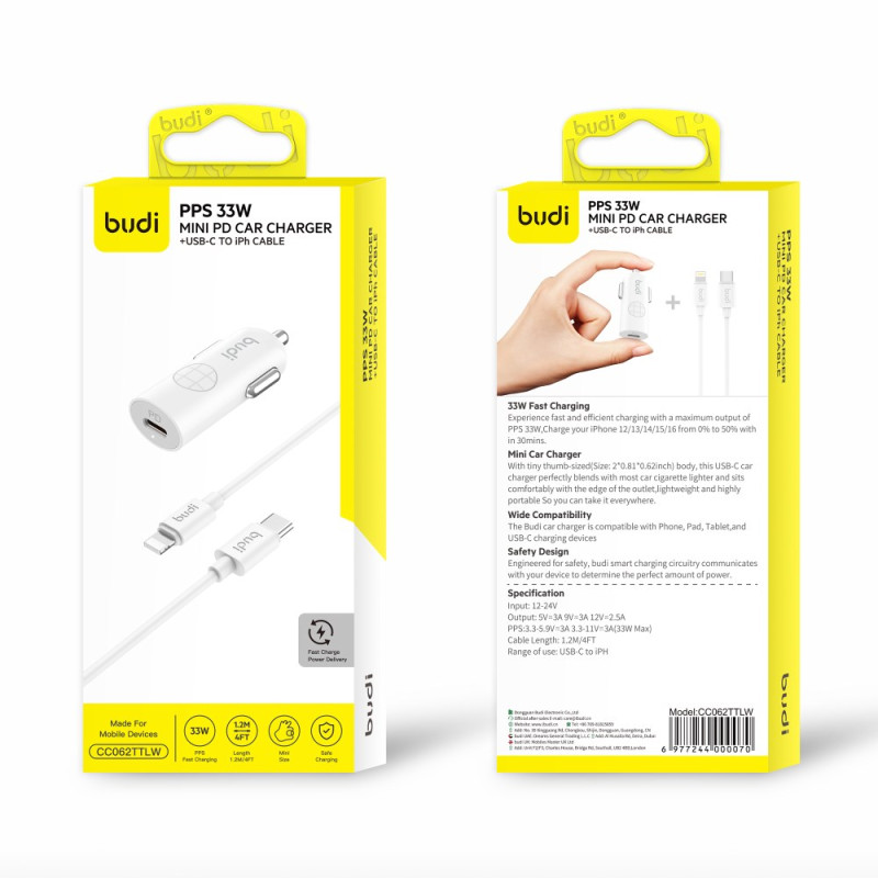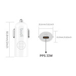 Carregue os seus dispositivos num instante com este carregador para automóvel compacto de 33 W. Compatível com dispositivos iPhone e USB-C, inclui um cabo de 1,2 m para utilização imediata. Design mini e elegante, carregamento rápido garantido.