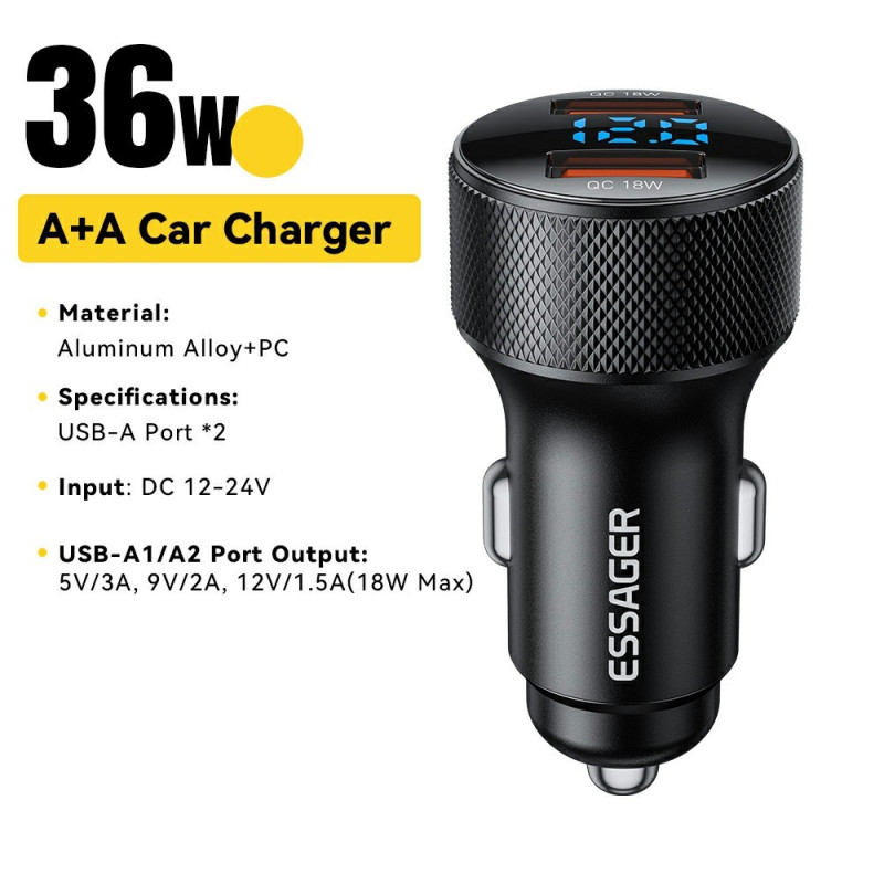 Carregue rapidamente os seus dispositivos em movimento com este carregador para automóvel de duas portas de alto desempenho. Com a tecnologia Power Delivery de 36 W e um visor digital, oferece um carregamento simultâneo ótimo para todos os seus dispositivos compatíveis.