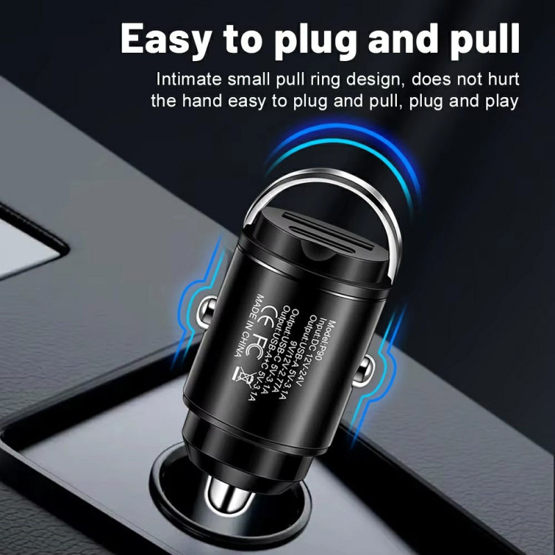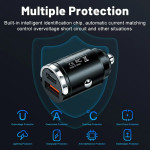 Carregador de isqueiro ultrarrápido de 30 W com porta USB dupla e PD Tipo C. Tire partido da tecnologia QC3.0 para um carregamento rápido dos seus dispositivos. Design compacto com anel de remoção prático e chip inteligente.