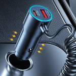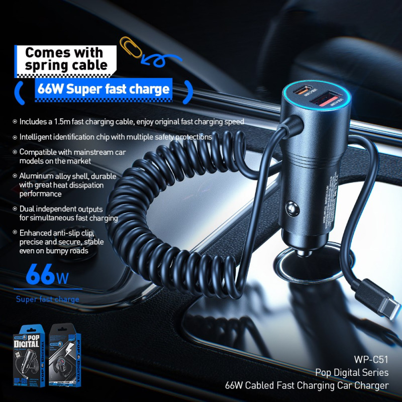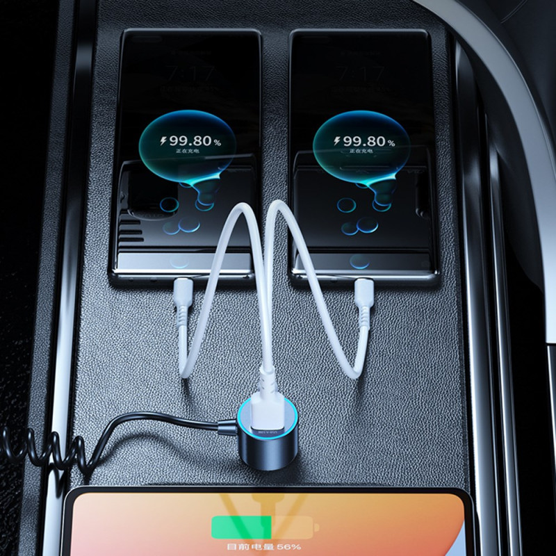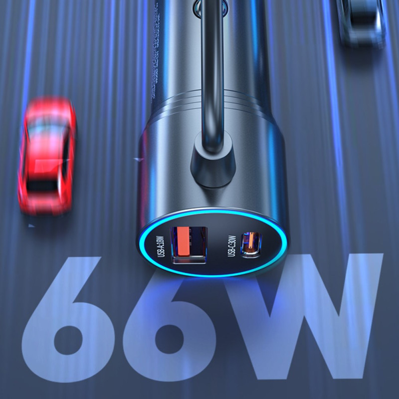 Desfrute de um carregamento ultrarrápido de 66 W em movimento com este carregador para automóvel inteligente. Com um cabo tipo C retrátil de 1,5 m integrado, várias portas USB-A e USB-C e proteção avançada para os seus dispositivos. Compatível com todos os veículos.