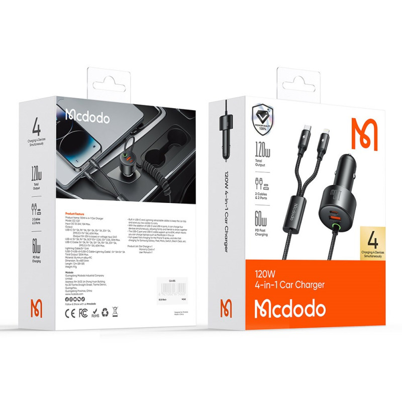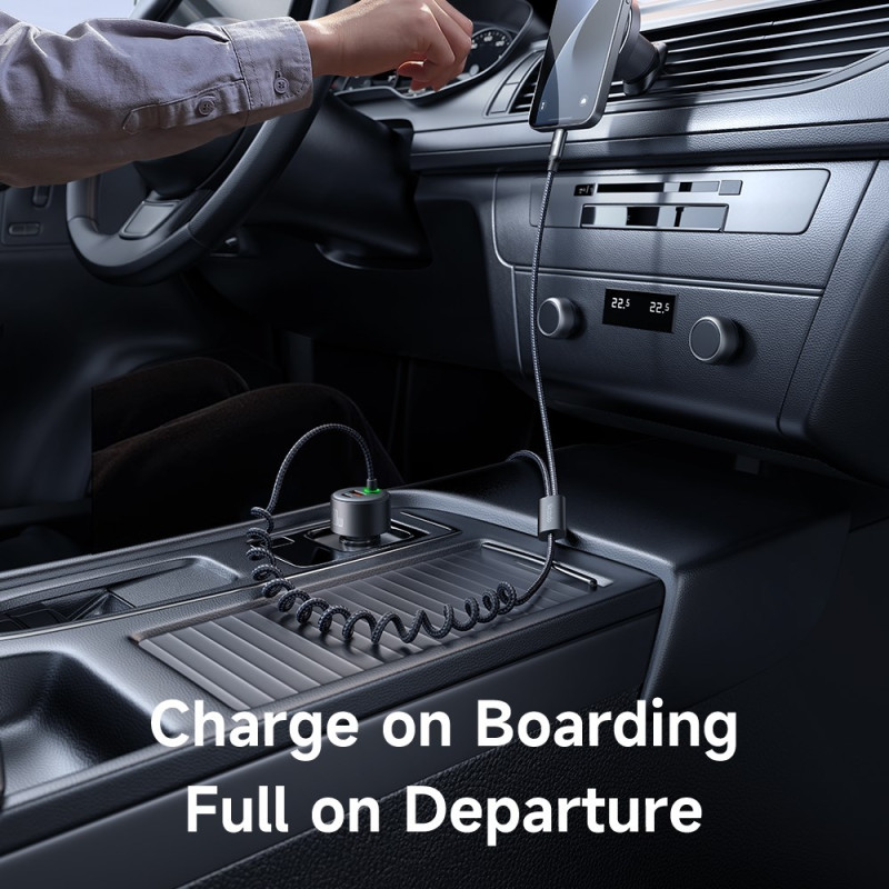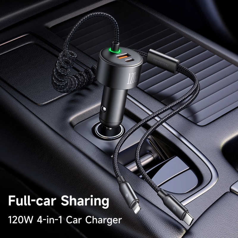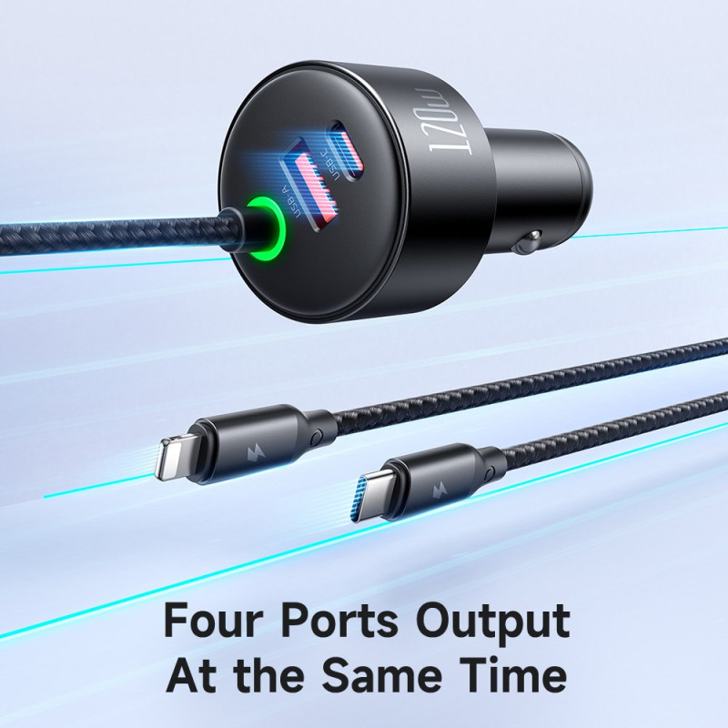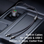 Carregue todos os seus dispositivos em simultâneo com este carregador para automóvel de 120 W de alto desempenho. Com portas USB-C e USB-A que oferecem 60 W e 30 W, respetivamente, inclui cabos USB-C e Lightning retrácteis para uma utilização sem confusão.