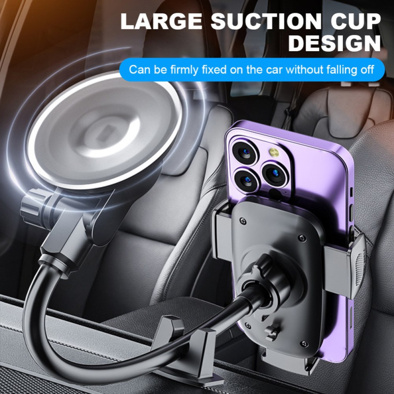 Suporte universal para telemóvel para automóvel com ventosa potente e braço flexível e extensível. Roda 360° para um ângulo de visualização ótimo. Compatível com todos os smartphones de 4,7 a 7 polegadas. Fácil instalação no para-brisas ou no painel de instrumentos.