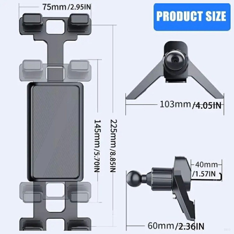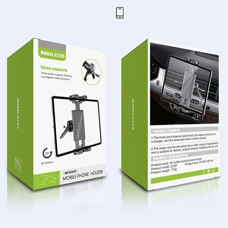 Transforme as suas viagens com este suporte de ventilação universal. Compatível com todos os dispositivos de 7 a 12,9 polegadas, oferece uma rotação completa de 360° para um posicionamento ótimo. Mantenha as suas mãos livres enquanto acede facilmente à navegação GPS, aos vídeos e às chamadas. Instalação segura e estável, concebida para nunca obstruir a sua visão.