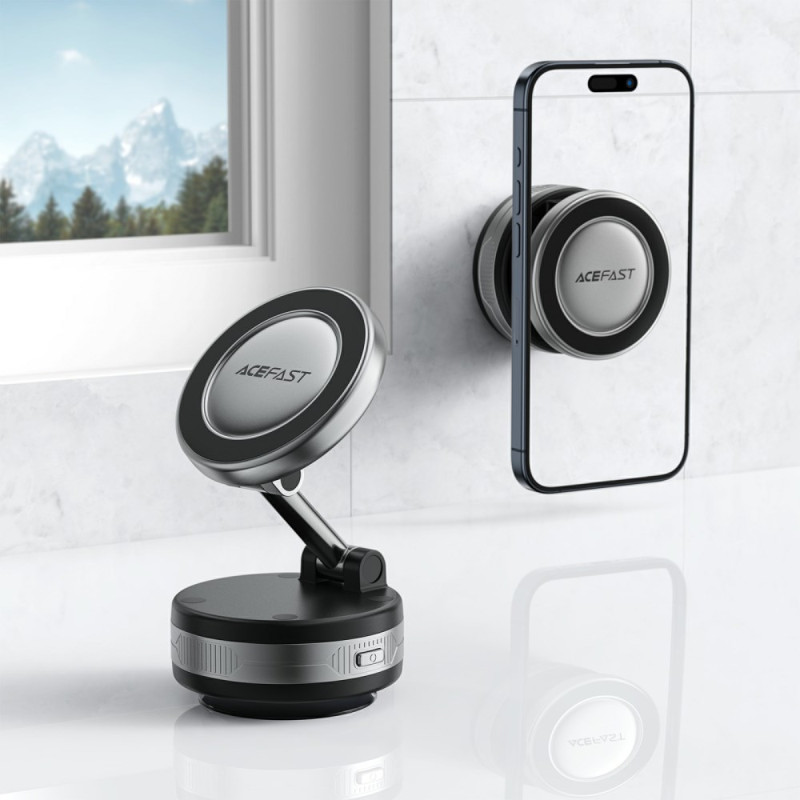 Descubra o suporte magnético ACEFAST com ventosa eléctrica inteligente de aspiração. Fixação potente e segura graças aos seus ímanes fortes. Compatível com todas as superfícies lisas: painel de bordo, para-brisas, secretária, azulejos. Design compacto e elegante para uma instalação fácil. A solução perfeita para manter o seu telemóvel seguro em movimento e em casa.