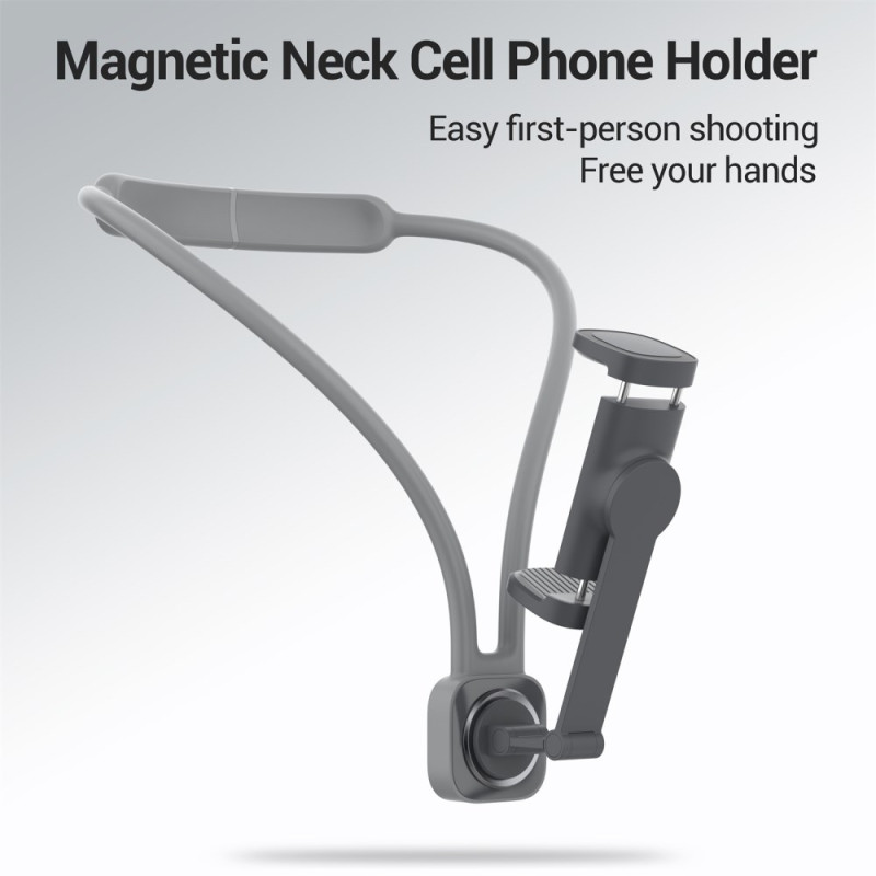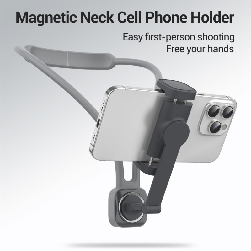 Uma ferramenta criativa modular por excelência, este suporte magnético é adequado para filmagens em movimento e estáticas. O seu design POV com fita para o pescoço permite uma gravação imersiva com as mãos livres. Para maior estabilidade, inclui um mini tripé, tornando-o ideal para selfies de grupo e fotografias. O colar flexível, revestido a silicone, garante um ajuste confortável sem causar dor. O sistema de fixação magnética permite colocar e retirar o telemóvel rapidamente. É compatível com todos os smartphones (6-11 cm de largura).