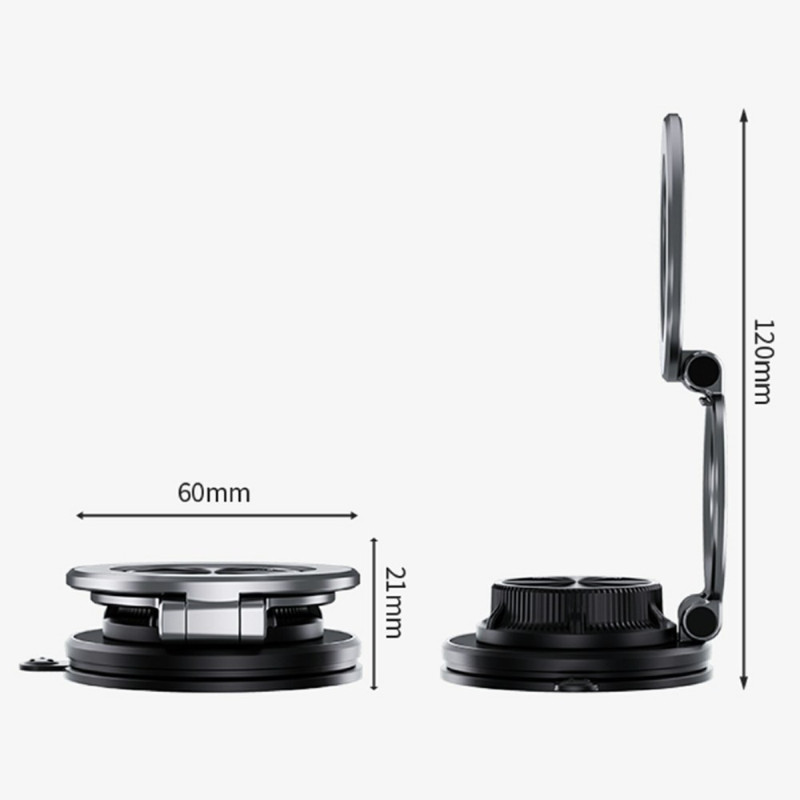 Graças à sua dobradiça em aço de tungsténio, a regulação do ângulo é precisa, duradoura e adaptável a todas as superfícies do veículo. Este suporte ESSAGER é fabricado numa liga de zinco de primeira qualidade, oferecendo uma resistência estrutural superior. Utiliza um método de fixação duplo: uma ventosa potente e ímanes de neodímio N52 para uma fixação ultra segura no painel de instrumentos. A máxima flexibilidade é proporcionada por uma rotação de 360°, uma dobragem de 210° e uma inclinação de 180°. O seu design dobrável e ultrafino facilita a sua arrumação quando não está a ser utilizado.