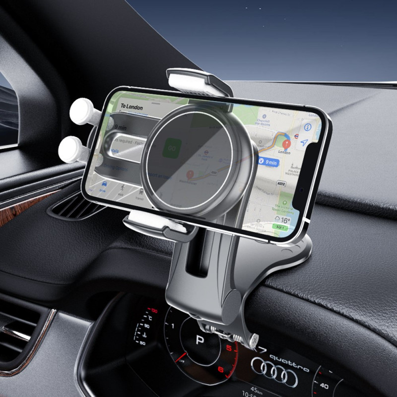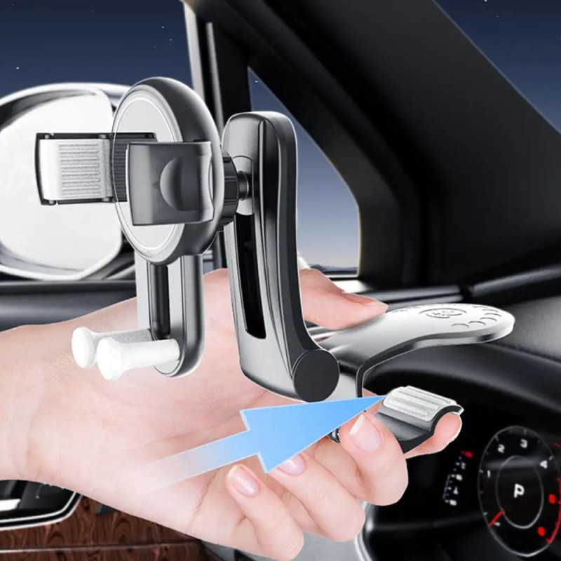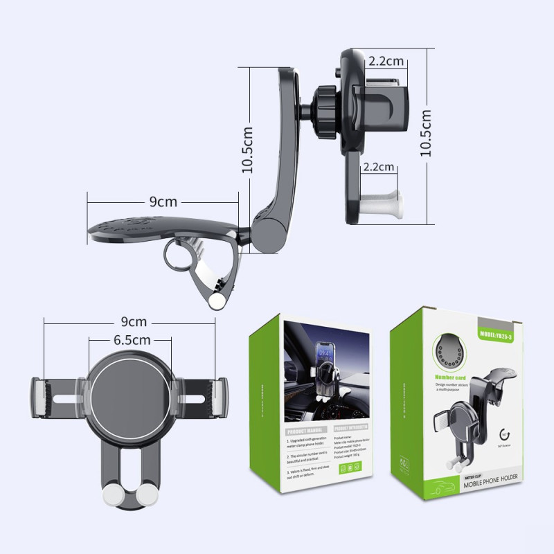 O suporte para telemóvel no painel de instrumentos YB25-3 combina elegância e funcionalidade para uma experiência de condução mais segura e confortável. O seu design elegante integra-se perfeitamente no interior do automóvel, enquanto o seu clipe robusto proporciona uma excelente estabilidade. Ajustável e compatível com a maioria dos smartphones, permite uma instalação rápida com uma só mão e sem ferramentas. Fabricado em ABS e silicone resistentes, mantém o seu dispositivo seguro mesmo em estradas acidentadas e também pode ser utilizado como suporte da placa de estacionamento.