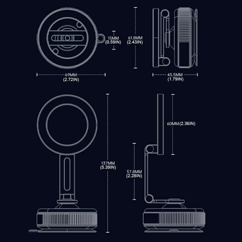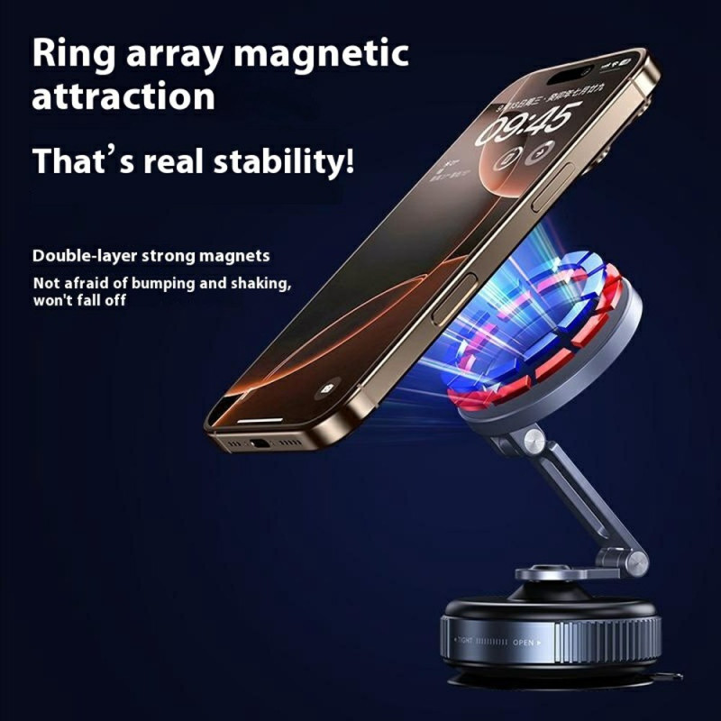 O suporte magnético para telemóvel de automóvel oferece uma fixação ultra-segura e a máxima flexibilidade para uma condução mais segura. Equipado com 16 ímanes potentes e um sistema de sucção a vácuo duplo, garante uma aderência perfeita ao painel de instrumentos ou ao para-brisas, mesmo em estradas irregulares. A sua rotação de 360° permite ajustar facilmente o ângulo de visão em modo retrato ou paisagem. Fabricado em liga de alumínio leve e duradoura com almofadas de silicone antiderrapantes, segura firmemente qualquer smartphone a partir de 4,7 polegadas sem o risco de riscar.