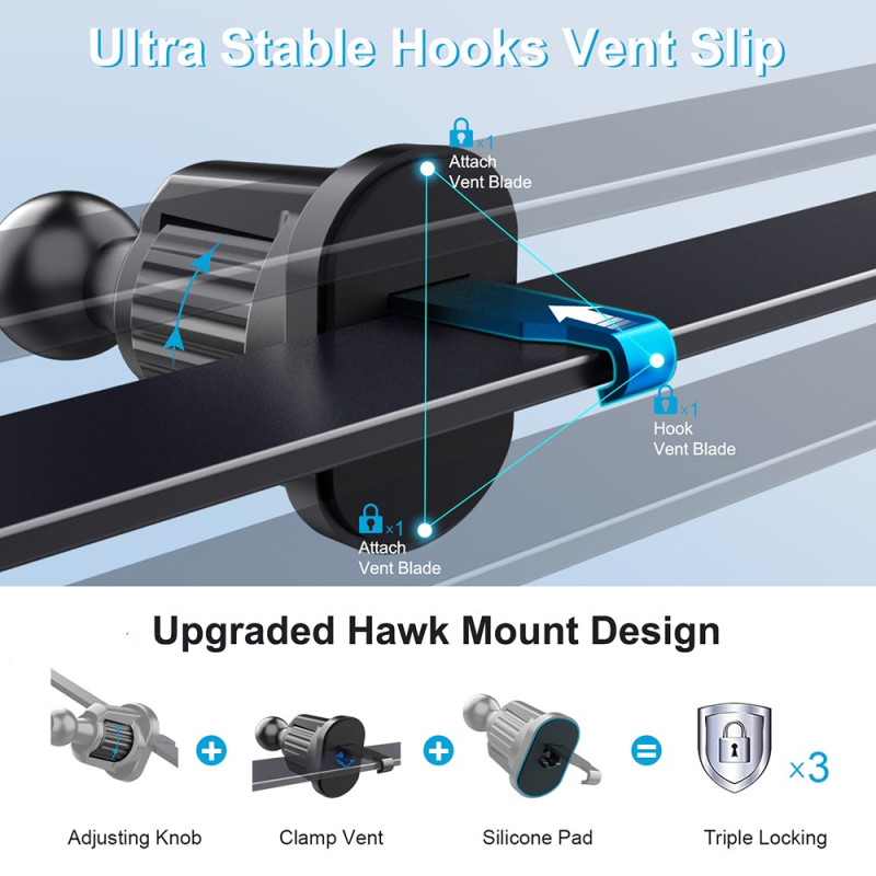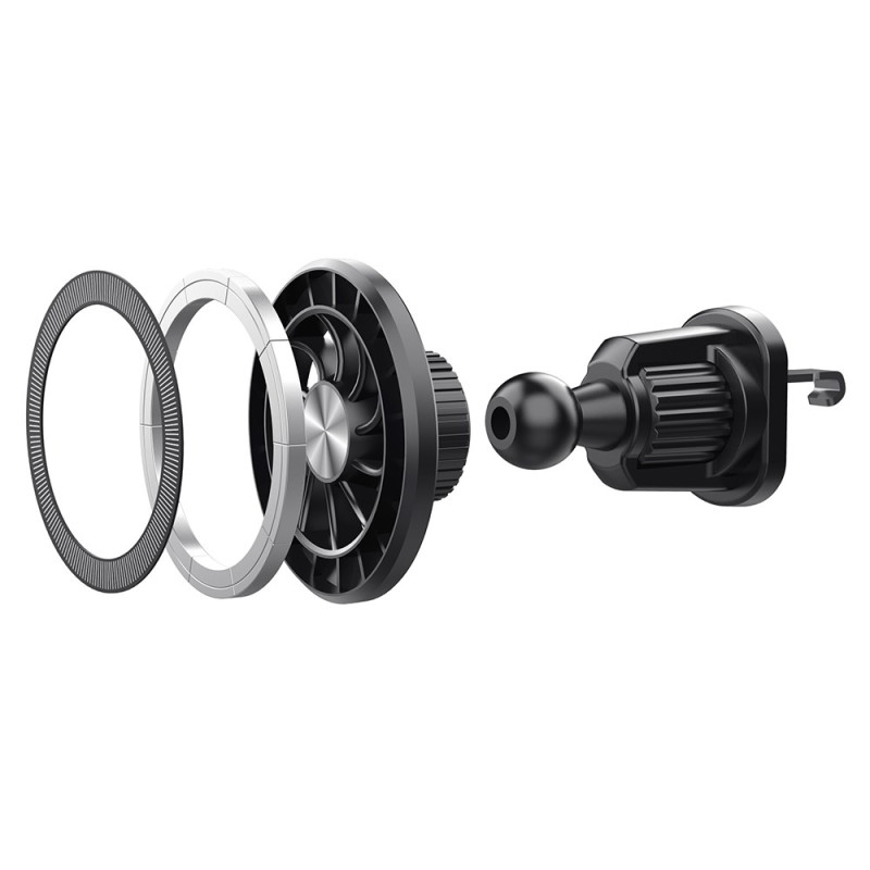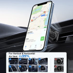O suporte magnético rotativo de 360° para telemóvel para saídas de ar proporciona uma fixação segura, estável e prática para todas as suas viagens. Equipado com 8 ímanes N50 de dupla camada, segura o seu smartphone com firmeza, mesmo em estradas irregulares. A sua cabeça rotativa permite um ajuste suave de 360°, para um ângulo de visão ideal em modo retrato ou paisagem. O seu sistema de bloqueio por gancho metálico garante uma fixação segura nas saídas de ar. Compatível com todos os smartphones de 4 a 7 polegadas, pode ser colocado e retirado rapidamente com uma só mão.