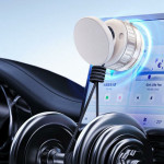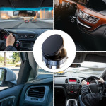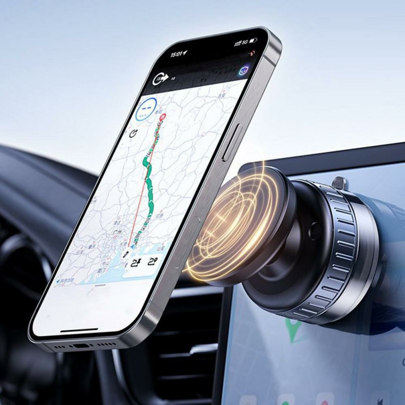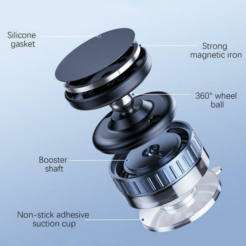 O suporte para telemóvel com ventosa magnética para automóvel oferece uma fixação segura e estável graças ao seu sistema de sucção de vácuo duplo, ideal para instalação em para-brisas, painéis de instrumentos ou qualquer superfície lisa. A sua cabeça rotativa de 360° facilita o ajuste do ângulo de visão para uma navegação clara e chamadas em mãos-livres seguras. Leve e compacto, é fácil de transportar de veículo para veículo. Fabricado em ABS e TPU duráveis, adapta-se a todos os smartphones magnéticos a partir de 4,7" ou a modelos não magnéticos com uma placa de metal.