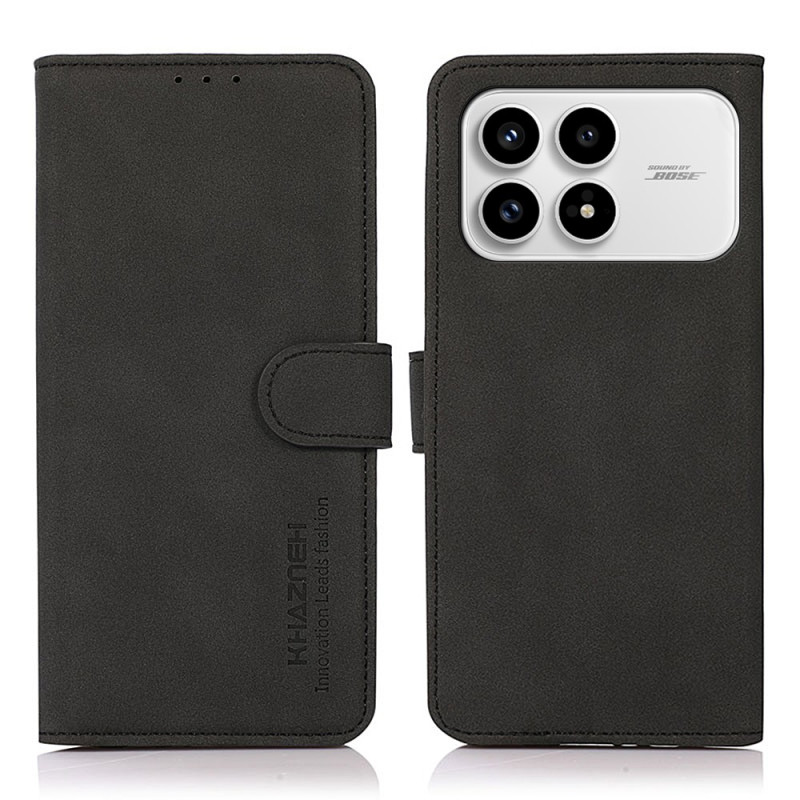 Descubra a capa tipo carteira KHAZNEH para o Poco F8 Pro. Design elegante com textura, proteção total contra riscos e choques. Função de suporte prática para os seus vídeos, 2 ranhuras para cartões e 1 bolso para dinheiro. Fecho magnético seguro e fácil instalação.