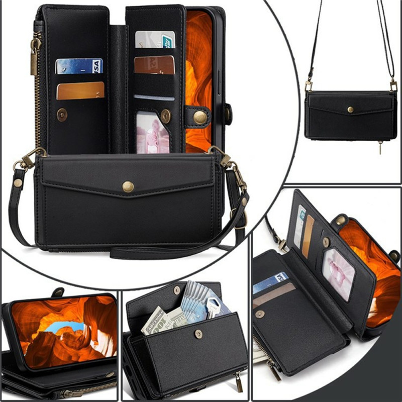 Proteja o seu smartphone com estilo com esta capa multifunções para carteira. Com 5 ranhuras para cartões, um bolso seguro com fecho de correr e um suporte dobrável, combina uma proteção robusta com a praticidade do dia a dia.