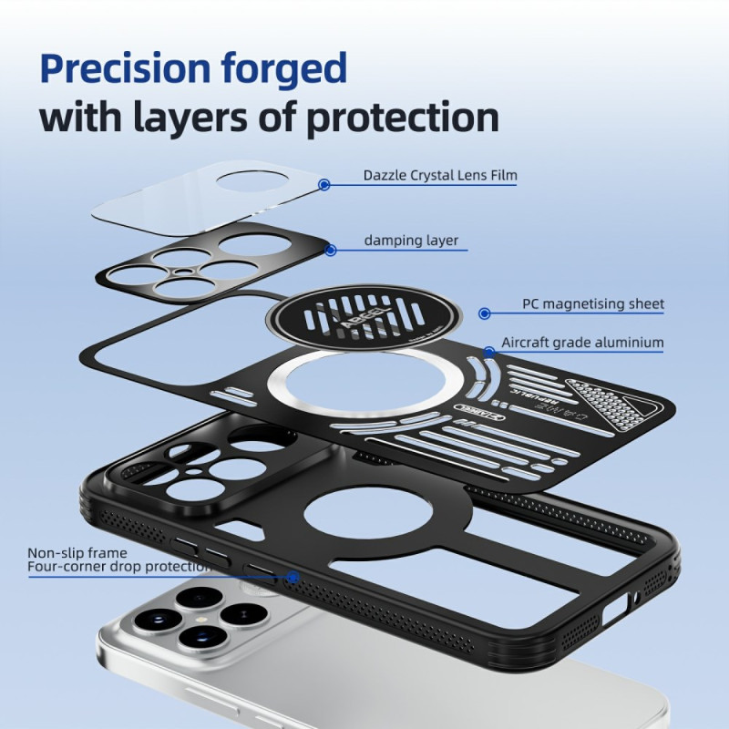 Proteja o seu smartphone com estilo com esta capa magnética de alto desempenho. O seu design inovador em forma de favo de mel garante uma óptima dissipação do calor, enquanto as almofadas de ar reforçadas oferecem proteção contra choques...