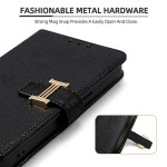 Descubra a elegância e o carácter prático deste sofisticado porta-moedas. Com um fecho magnético fixado por um laço metálico em I, possui 3 ranhuras para cartões e 1 bolso para dinheiro. O seu suporte ajustável permite-lhe desfrutar do seu conteúdo com as mãos livres.