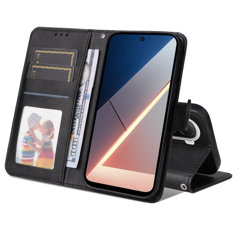 Étui portefeuille élégant en cuir PU texturé pour Xiaomi Poco M7 4G. Multifonctionnel avec fentes pour cartes, fonction support, fermeture magnétique sécurisée et dragonne pratique. Protection intégrale contre les chocs et rayures.