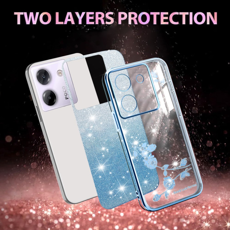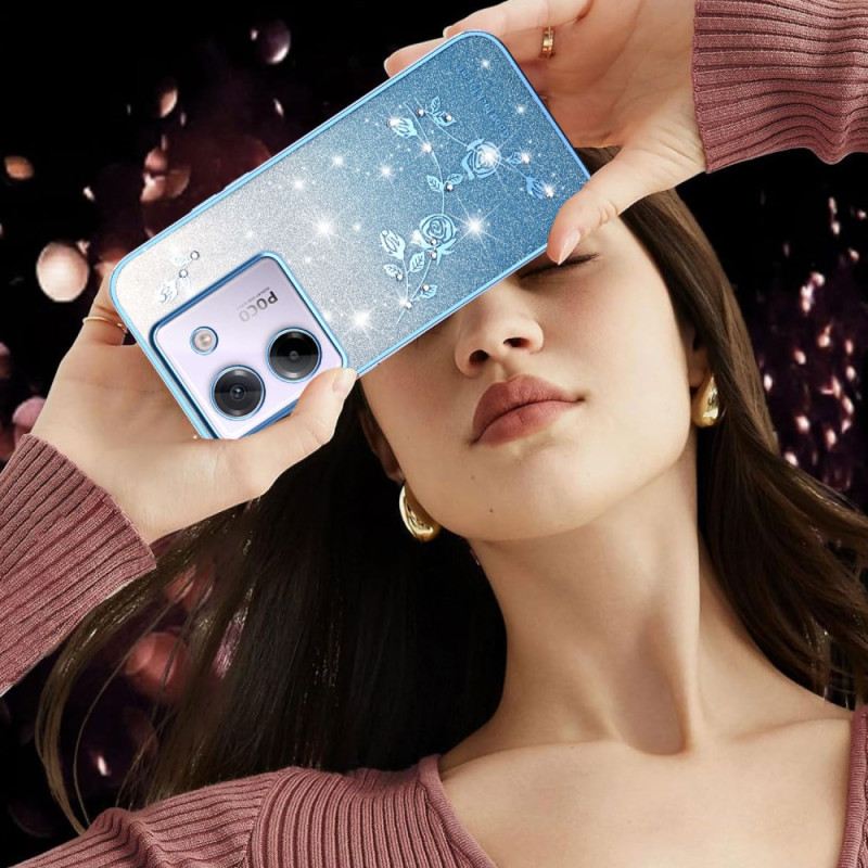 Protégez votre Xiaomi Poco M7 Pro 5G avec élégance grâce à cette coque en TPU flexible ornée de fleurs éternelles et de strass scintillants. Son design dégradé à paillettes apporte une touche glamour et tendance à votre téléphone.