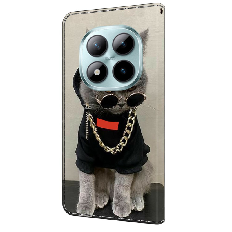 Proteja o seu Xiaomi Redmi Note 15 5G / 4G / Poco M8 5G com estilo com esta capa com aba com um design exclusivo de gato e óculos. Design elegante com suporte dobrável integrado, ranhuras para cartões e fecho magnético seguro. Combinação de moda e funcionalidade para uma proteção óptima todos os dias.