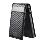 Descubra o porta-cartões SUTENI, que alia estilo e funcionalidade. Com a sua textura em fibra de carbono, 8 ranhuras e ejeção automática, oferece uma solução elegante para organizar os seus cartões.