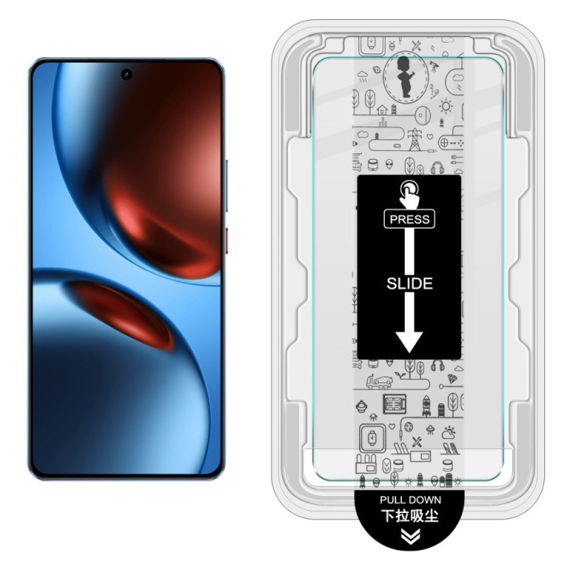 Protetor de ecrã ultra-resistente com instalação automática sem bolhas. Vidro temperado 9H para uma nitidez HD excecional, revestimento oleofóbico anti-riscos e compatibilidade com o desbloqueio de impressões digitais.