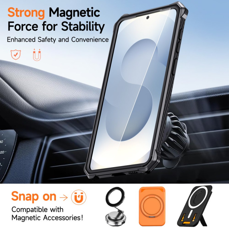 Protégez votre Samsung Galaxy S26 Plus avec cette coque magnétique hybride dotée d'une béquille intégrée. Construction triple couche TPU+PC, coins renforcés à coussin d'air et système magnétique puissant pour une protection optimale contre les chutes et l'usure quotidienne.