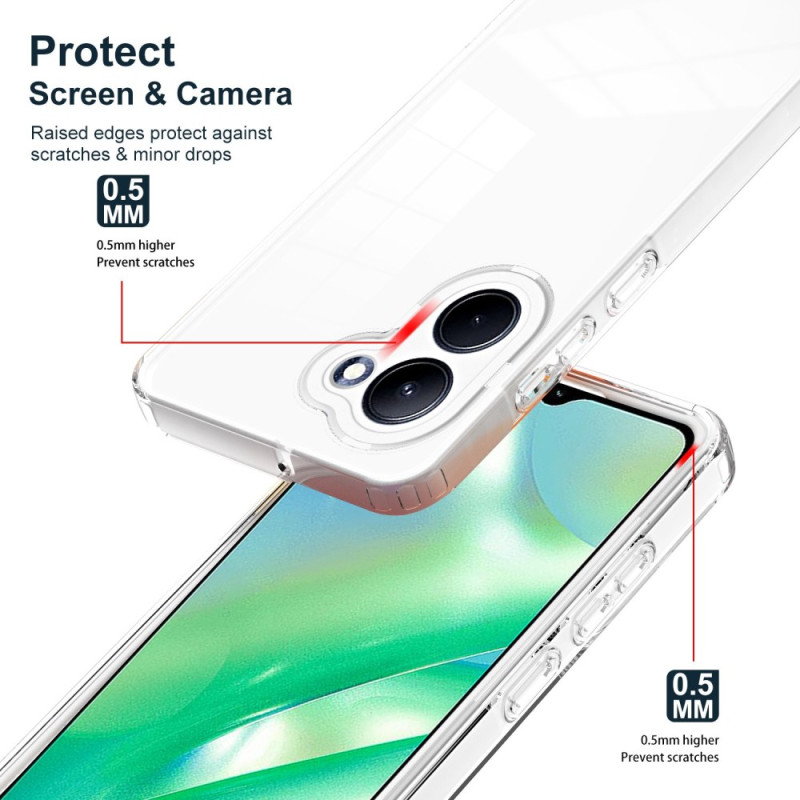 Concebida com uma placa posterior de silicone transparente, uma moldura de plástico e um anel de proteção da câmara, oferece uma proteção óptima para o seu telemóvel.