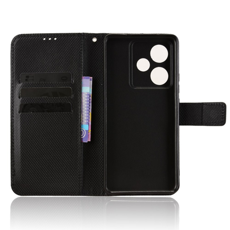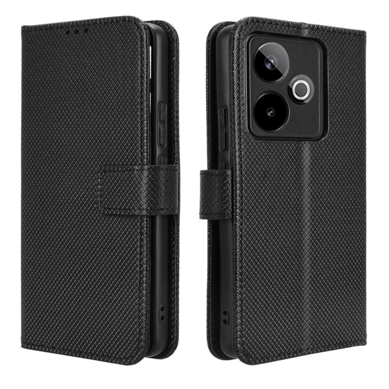 Capa elegante para carteira com uma sofisticada textura de diamante para o seu Realme GT7 5G. Com várias ranhuras para cartões, um bolso para notas e um fecho magnético seguro. A prática alça de mão facilita o seu transporte.