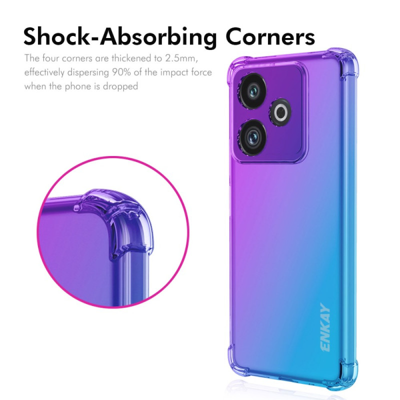 Proteja o seu Realme GT 7 5G com esta capa ENKAY TPU com cantos reforçados. Design gradiente elegante, proteção óptima contra quedas e riscos. Cantos elevados para o ecrã e a câmara.
