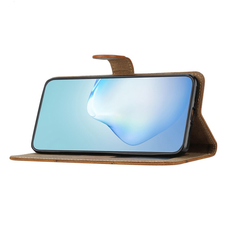 A capa de alças estilo couro oferece protecção total e multifuncional para o Samsung Galaxy A04s.