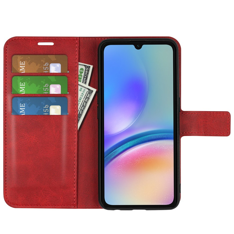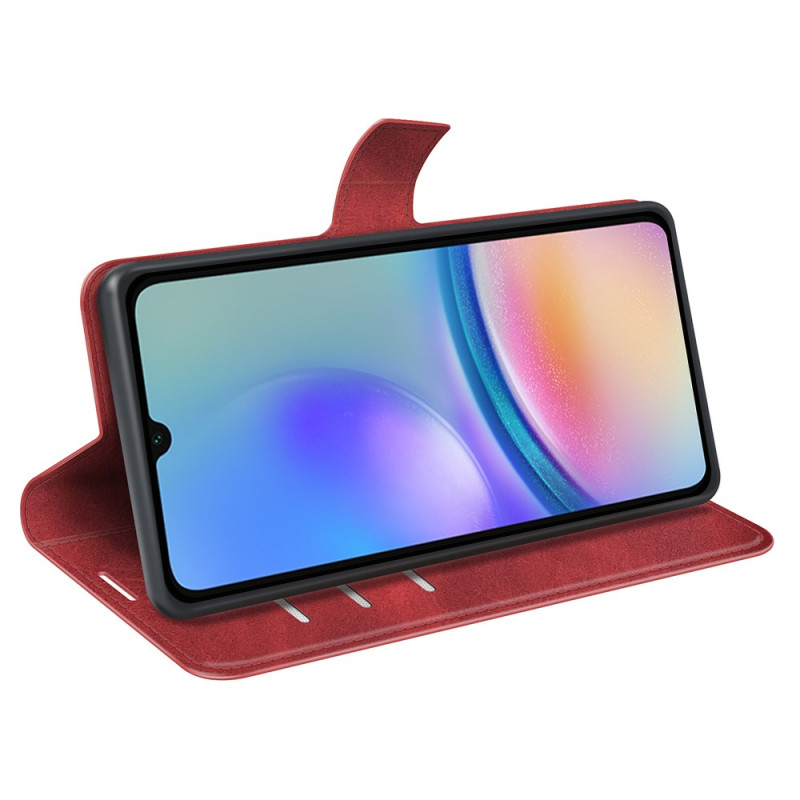 Descubra a nossa capa topo de gama com efeito de pele para o Samsung Galaxy A05s com uma base dobrável e uma textura única.