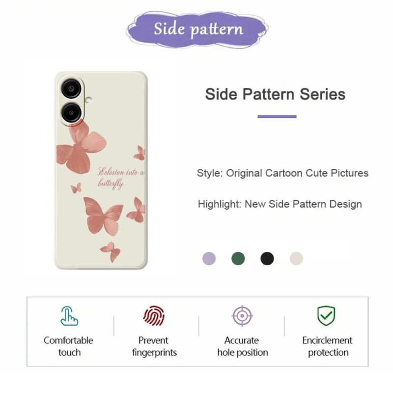 Protégez votre Samsung Galaxy A07 5G / 4G avec style grâce à cette coque en TPU texture silicone liquide. Son design élégant orné de papillons combine protection optimale et esthétique raffinée, avec bords surélevés pour protéger l'appareil photo.