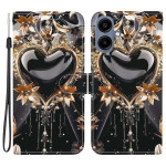 Proteja o seu Samsung Galaxy A07 5G / 4G / A06 com estilo com esta elegante capa para carteira com um motivo de coração preto e dourado. Com várias ranhuras para cartões, um suporte dobrável e uma prática correia de pulso para uma utilização fácil no dia a dia.