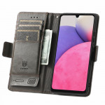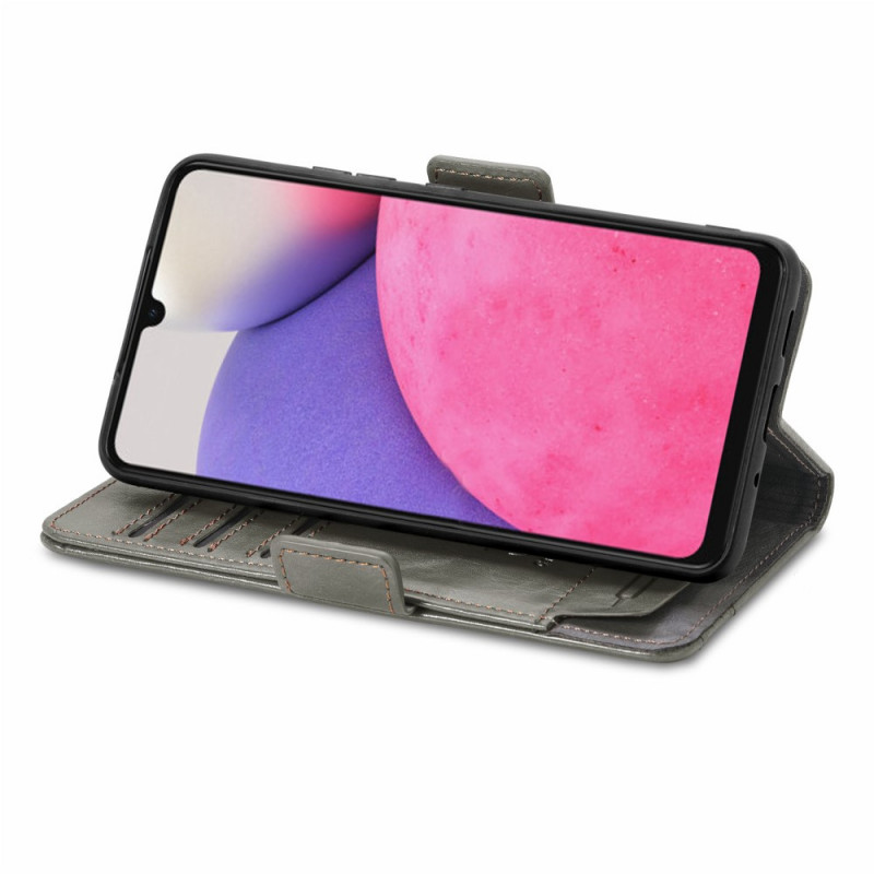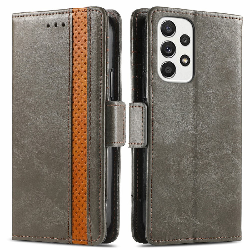 Uma capa em pele de dois tons para o Samsung Galaxy A13 4G, com proteção, ranhuras para cartões e um fecho duplo.