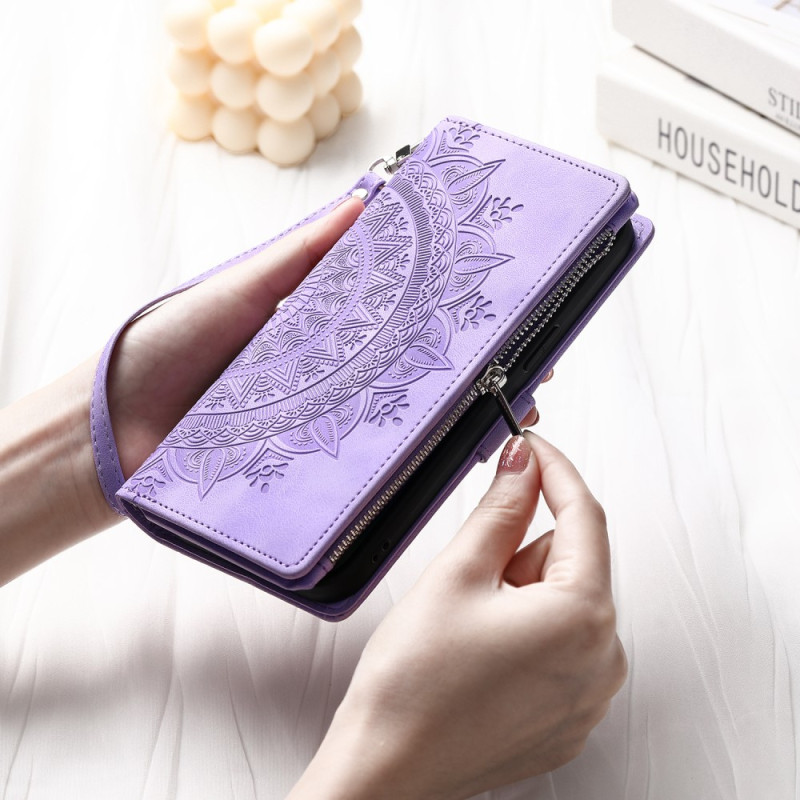 Esta capa multifuncional Mandala Soleil é perfeita para o Samsung Galaxy A14 5G / A14 com os seus numerosos porta-cartões.